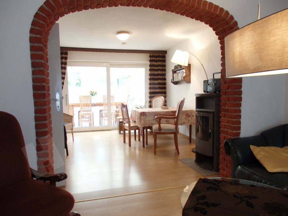 Eingezäunter Garten mit Wintergarten zur Südseite. Fahrräder können in einem Abstellraum verwahrt werden. Garten mit Gartenmöbeln. Ihr Auto parken Sie direkt am Haus auf dem Privatgelände.