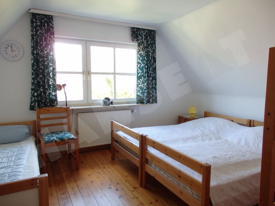 Im Obergeschoss befinden sich zwei Schlafzimmer mit je einem Doppelbett, wobei das eine Schlafzimmer über ein weiteres Stockbett sowie ein Einzelbett verfügt. Auch hier ist ein Bad vorhanden, dass mit einer Badewanne ausgestattet ist, sowie einer Waschmaschine.