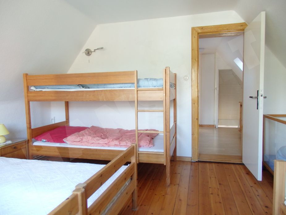 Im Obergeschoss befinden sich zwei Schlafzimmer mit je einem Doppelbett, wobei das eine Schlafzimmer über ein weiteres Stockbett sowie ein Einzelbett verfügt. Auch hier ist ein Bad vorhanden, dass mit einer Badewanne ausgestattet ist, sowie einer Waschmaschine.