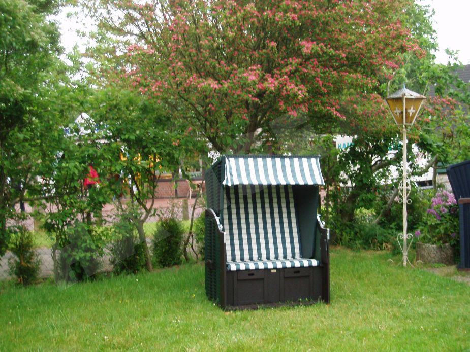 Der Garten mit großem Rasen lädt zum Spielen und Faulenzen ein. Dort sind Strandkorb und Gartenmöbel für Ihre Entspannung vorhanden. Ihr Auto können Sie direkt auf dem Grundstück parken, dass von hohen Hecken umgeben ist, so dass Sie sich hier ungestört wohlfühlen werden.